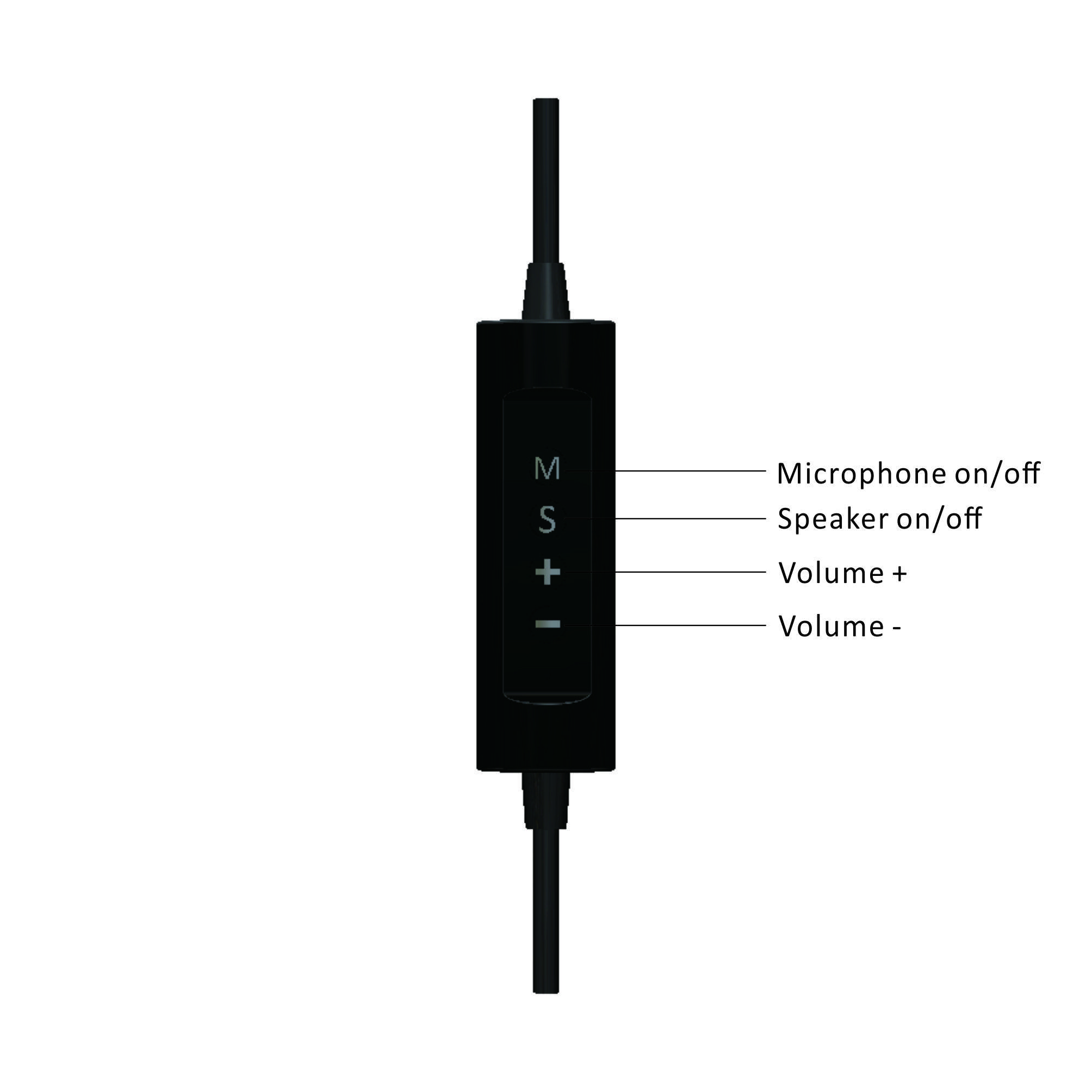 - 1.8M Cable with Digital Remote Control (M: Microphone, S: Speaker, +: Volume up, -: Volume down)